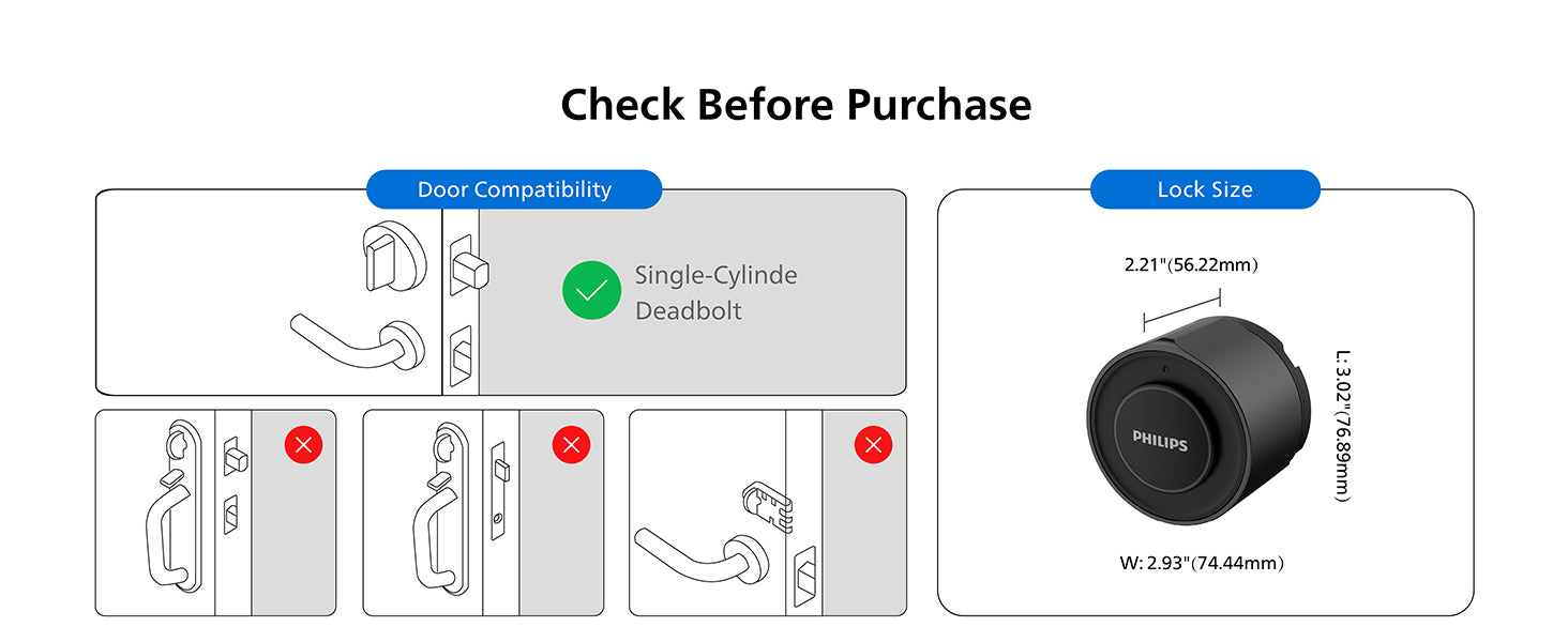 Keyless entry: The Philips Wi-Fi retrofit lock comes equipped with a built-in Wi-Fi module, eliminating the need for an additional Wi-Fi bridge for remote control. Easily manage your lock and user accounts securely via the Philips Home Access App. You can also remotely unlock the door for family members, friends, visitors, and more.