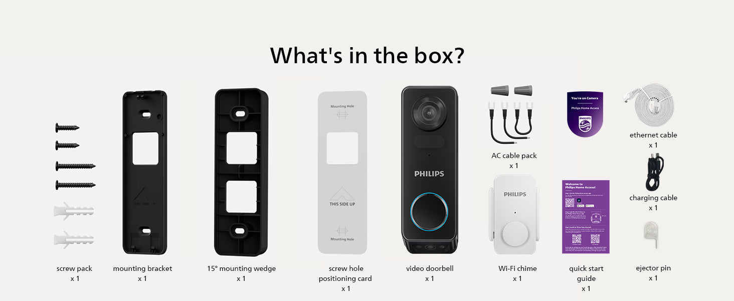 No monthly fees or subscriptions needed: Experience freedom from additional costs. The Philips 2K Dual-Cam video doorbell offers limited local storage without the burden of recurring subscriptions. Enjoy full access to features and functionality, ensuring your home security remains hassle-free and budget-friendly.