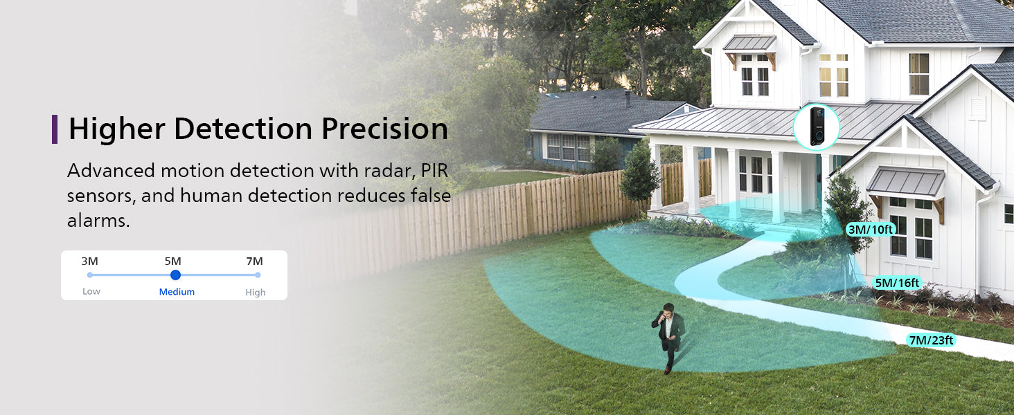 Advanced Motion Detection: Features radar, PIR sensors, and human detection for accurate alerts. "Package Guard" ensures delivery notifications and reminders.