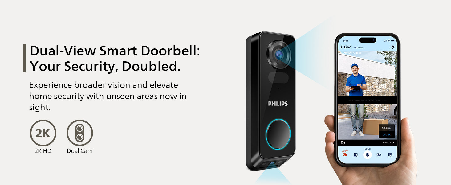 Get reliable protection at an unbeatable value with the Philips Fingerprint Electronic Deadbolt and 2K Dual Camera Video Doorbell. This entry-level bundle offers the core essentials for securing your front door — fast fingerprint unlocking, keyless convenience, clear visitor monitoring, and easy DIY installation — making it the perfect choice for first-time smart home users who want both security and convenience.
