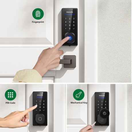 Combines the Philips 1000 Series Fingerprint Touchscreen Electronic Deadbolt with the Philips 2K Dual Camera Video Doorbell to deliver complete front door security