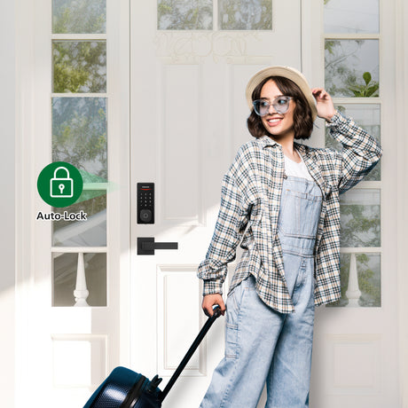 Modern design fits your door. High quality touchscreen keypad, available in multiple finishes. This digital door lock improves doors of any style.