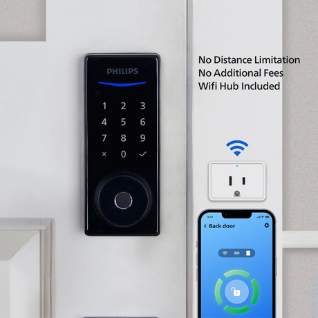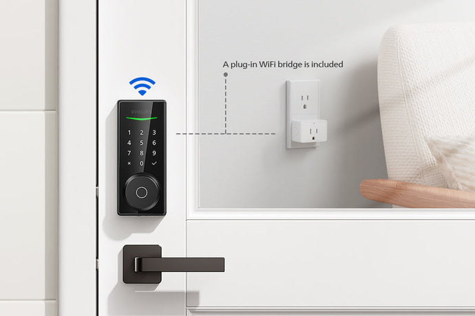 The lock connects to your phone via Bluetooth by default. For remote access and real-time notifications, it needs to connect the included Philips Wi-Fi bridge to your home network.